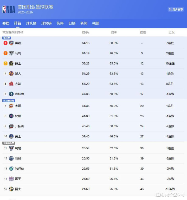 差距仅一场,3队抢西部第3!