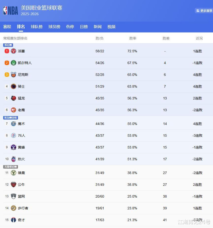 东部最新排名: