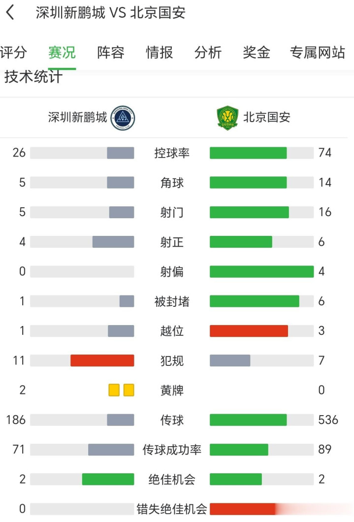 不过,如今沙滩足球主教练的首战演砸了,虽然北京国安的控球率74%、射门16:5等数据都处于绝对领先,但深圳新鹏城通过防守反击,早早锁定胜局。