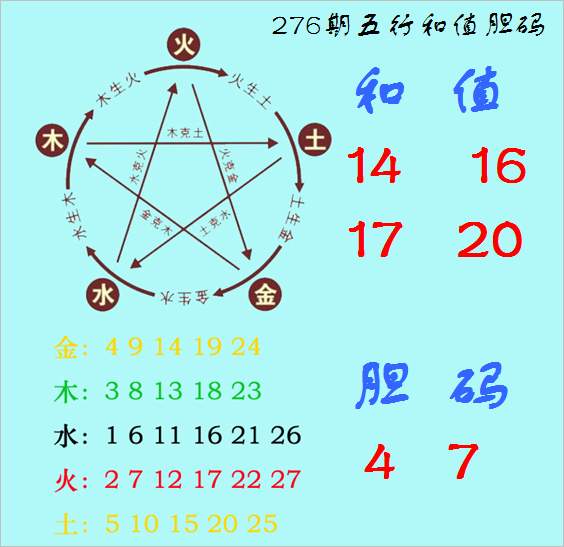 福彩3D第2025276期神算天五行和值胆码图