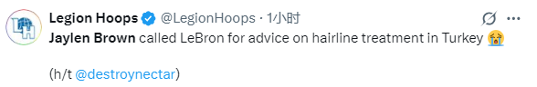 29岁布朗秃顶引热议: 致电詹姆斯咨询治疗发际线 调侃都怪凯尔特人