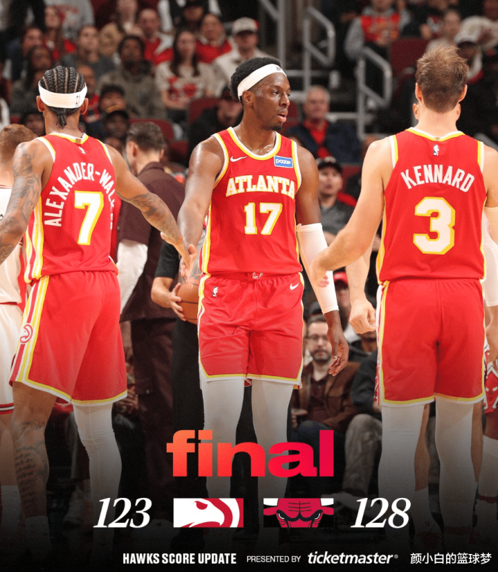 北京时间10月28日,NBA常规赛,老鹰以123-128被公牛逆转遭遇连败。开场老鹰一度领先13分之多,上半场打完公牛缩小到1分,第三节打完公牛已经实现反超,末节两队鏖战至最后一刻特雷杨连续三分不中公牛无力再度反超。