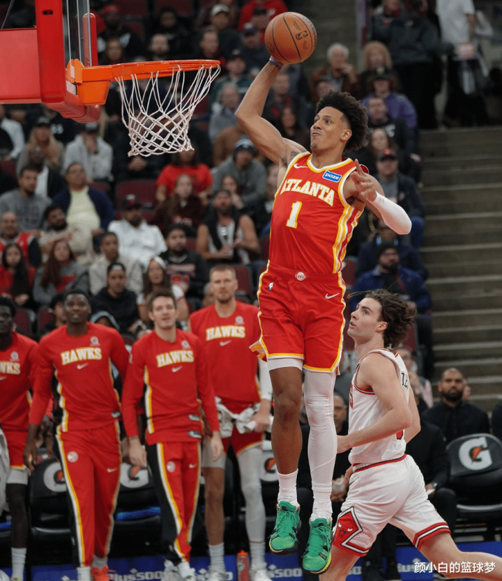 杰伦-约翰逊、波尔津吉斯两人成为老鹰上半场的先锋官,波尔津吉斯半场16分,杰伦约翰逊半场15分,而核心特雷杨上半场11中2+三分5中1拿8分8助攻,命中率18.2%,特雷杨的拉胯表现是公牛在第二节将分差缩小到1分的关键。