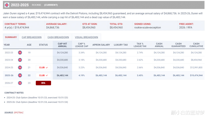 目前杜伦场均29分钟,拿到19.4分12篮板1.6助攻1.1抢断1.2盖帽,命中率64.7%,他是2022年首轮13顺位,今夏他与活塞的提前续约谈判失败了,但如果他按照这个水准打下去,在明夏活塞不用两亿可能留不下他,他只剩下648万的新秀最后一年。