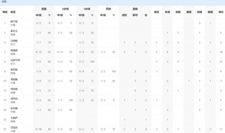 河南队方面,梁瑞博19分3篮板5助攻,吴彦宇璞12分3助攻2抢断。