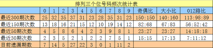 百位号码:前50期走势活跃的号码为:5、7开出8个,1、2开出6个;走势最冷的号码为:0、4、9开出3个。奖号012路比开出14:17:19,奇偶比开出29:21。本期百位杀排除:0、9,注意号码5、7、8,胆码参考7。