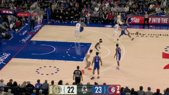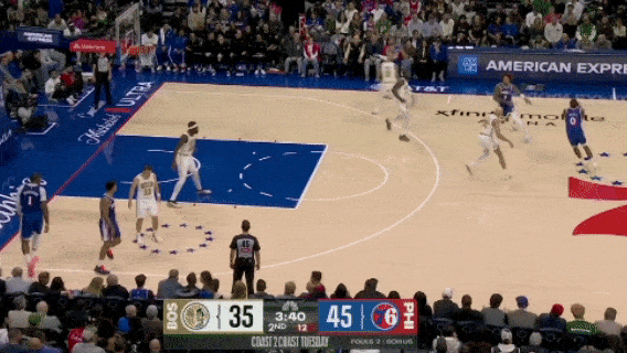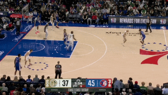 对阵76人的比赛,他防守马克西时,速度丝毫不落下风,用身体挡住马克西的突破方向,然后高举手臂干扰马克西投篮,